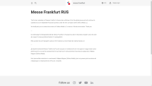 Messe Frankfurt RUS The former subsidiary of Messe Frankfurt in Russia has withdrawn from the global group.