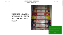 Potent Sticks Incense & Rasta Imports #potent #sticks #Incense #crystals #Stones #sheabutter #blacksoap #bodyoils #essentialoils #rastaclothing #sage #palosanto #metaphysical #imports #rastaitemsINCENSE • SAGE • BODY OILS • SHEA BUTTER • BLACK SOAP