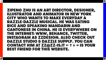 ZIPENG ZHU LOVES YOU Zipeng zhu is a designer, illustrator, animator and art director in New York City who wants to make everyday a razzle-dazzle musical. Before he ate cheese and spoke English, he was eating rice and speaking Mandarin and Cantonese in China.