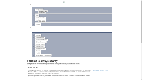 Ferrotec manufactures component, material, and system solutions for a broad range of precision products and industries. In the US, Ferrotec product offerings include ferrofluid, Ferrofluidic vacuum rotary feedthroughs, peltier thermoelectric coolers, fabricated quartz, and electron beam evaporation systems. Ferrotec has regional sales offices in Japan, China, Singapore, Europe and the USA, and offers worldwide sales and service to their international customer base.