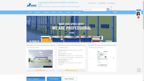 China High Speed Door,Overhead Sectional Garage Door,Double Glass Sliding Door Manufacturer and Supplier Shenzhen Hongfa Automatic Door Co., Ltd. have been specialized in High Speed Door manufacture for many years. Our main products are various kinds Overhead Sectional Garage Door,Double Glass Sliding Door,PVC High Speed Door. Also including Self-repair Doors,Turbine Fast Doors, etc.